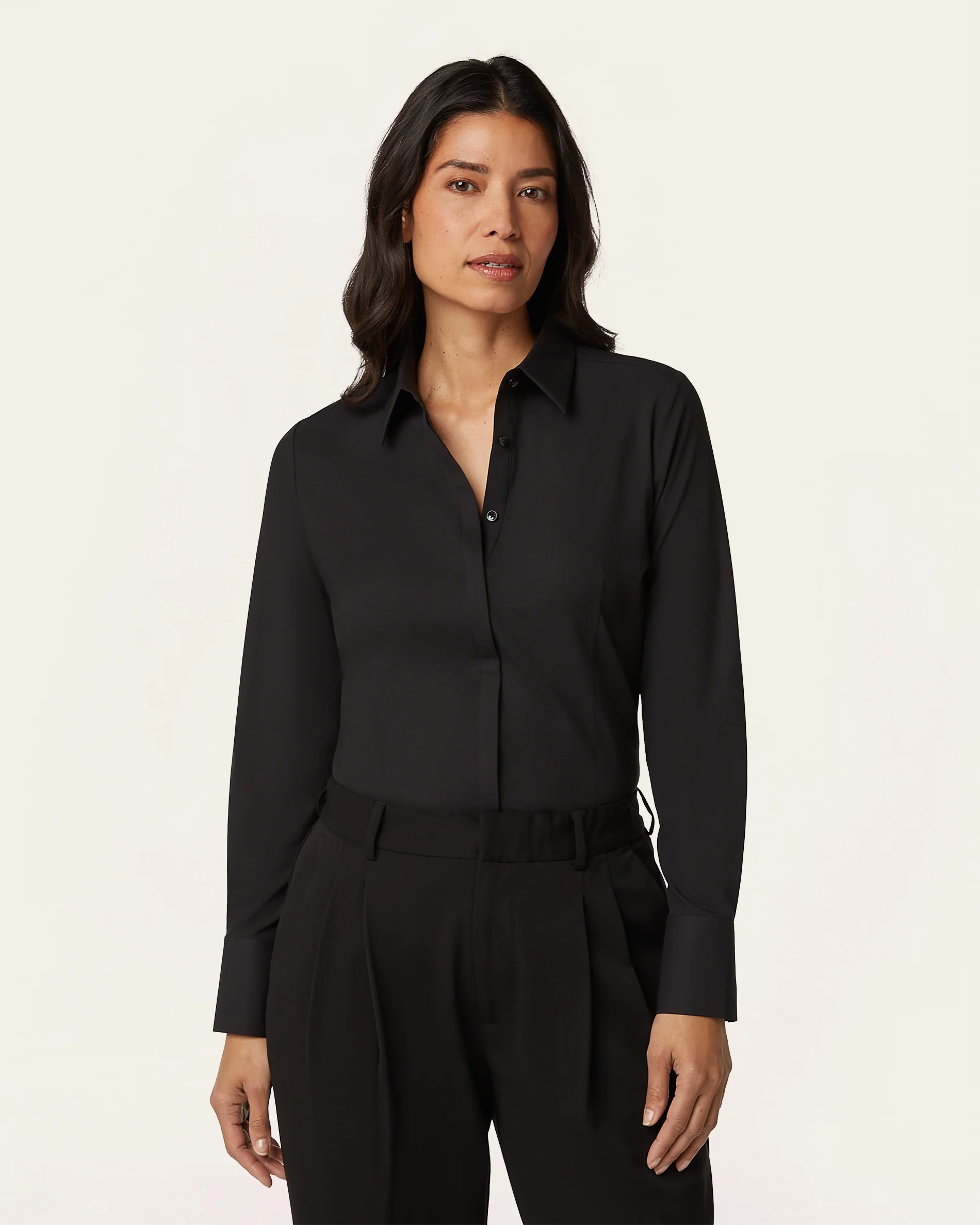 Maak kennis met de Slim Fit Blouse. Ontworpen voor de moderne vrouw in beweging. Deze blouse geeft je een verzorgde uitstraling, de hele dag door, dankzij 4-way stretch en een flatterend silhouet dat altijd mooi in vorm blijft. Gemaakt van 100% gerecycled polyester met geavanceerde strijkvrije en niet-doorschijnende stof die bovendien geurtjes, vocht en kreukels afstoot. Zo kun je je stomer en extra laagjes thuislaten.